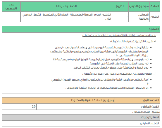 ورقة عمل درس المحاليل والذائبية الجزء الاول علوم ثاني متوسط Shms Saudi Oer Network