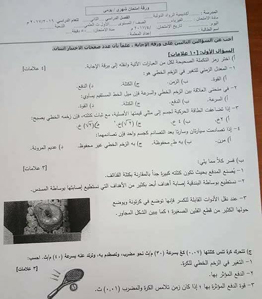 بالصور اختبار فيزياء الشهر الثاني مع الإجابات على الزخم الخطي والتصادمات للصف الأول ثانوي العلمي الفصل الثاني منتديات صقر الجنوب