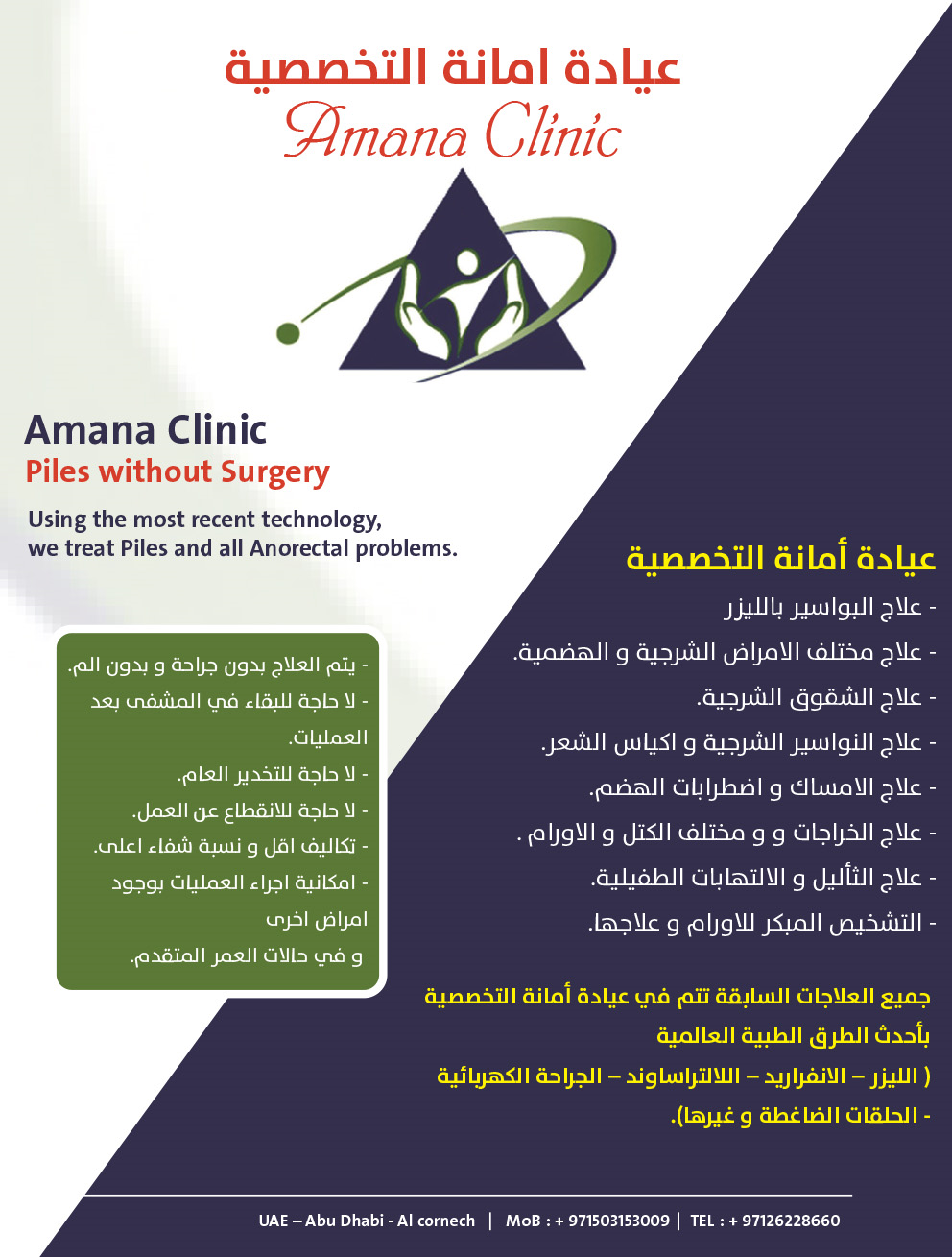 عيادة أمانة التخصصية لعلاج البواسير بالليزر مايو 2014