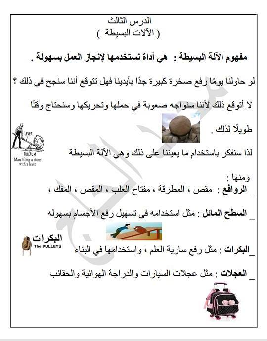 ملخص الآلات البسيطة علوم صف ثالث فصل ثالث مدرستي الامارتية