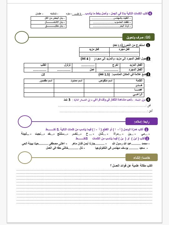 المستوى السادس ابتدائي نماذج فروض اللغة العربية موقع الأساتذة والتلاميذ للتعليم عن بعد